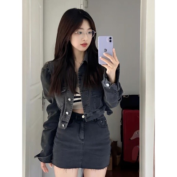 Talle M : pollera largo 37 , cintura 72 , campera largo 48 , busto 100, manga 60